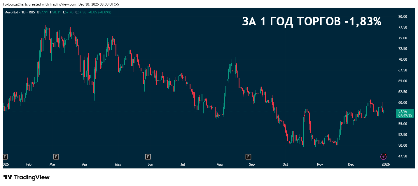 Акции AFLT находятся по итогам 2025 года в боковом движении и очень сильно подвержены влиянию геополитической повестке. Причем, большую часть прошедшего года ценная бумага была в понижательном тренде, но с августа образовалась некоторая стабилизация.