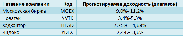 Таблица 3. Подтверждённые прогнозы из не менее чем двух источников: дивидендные компании, присутствующие не менее чем в 2 источниках исследования