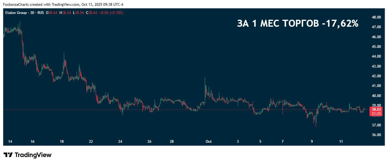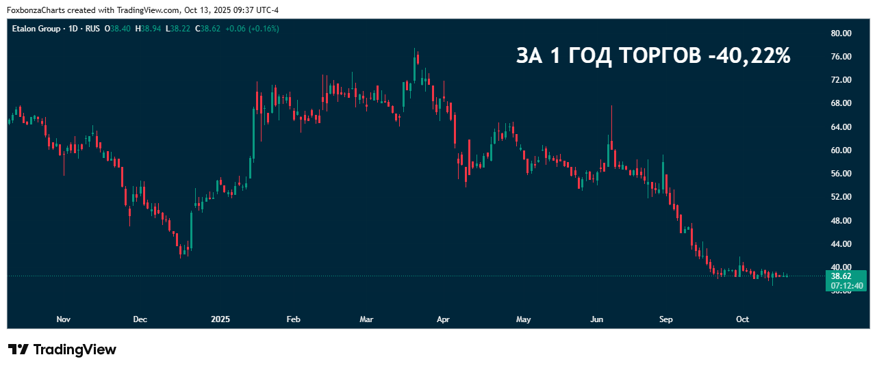 МКПАО "Эталон Групп" (ETLN) — российский девелопер, специализирующийся на строительстве жилой и коммерческой недвижимости в Санкт-Петербурге, Москве, Московской области и других регионах РФ. Компания занимает значительную долю на рынке массового жилищного строительства. На момент публикации: количество выпущенных акций — 383 445 362 штуки, цена акции — 38,62 рубля. Капитализация компании: 14 805 млн рублей.