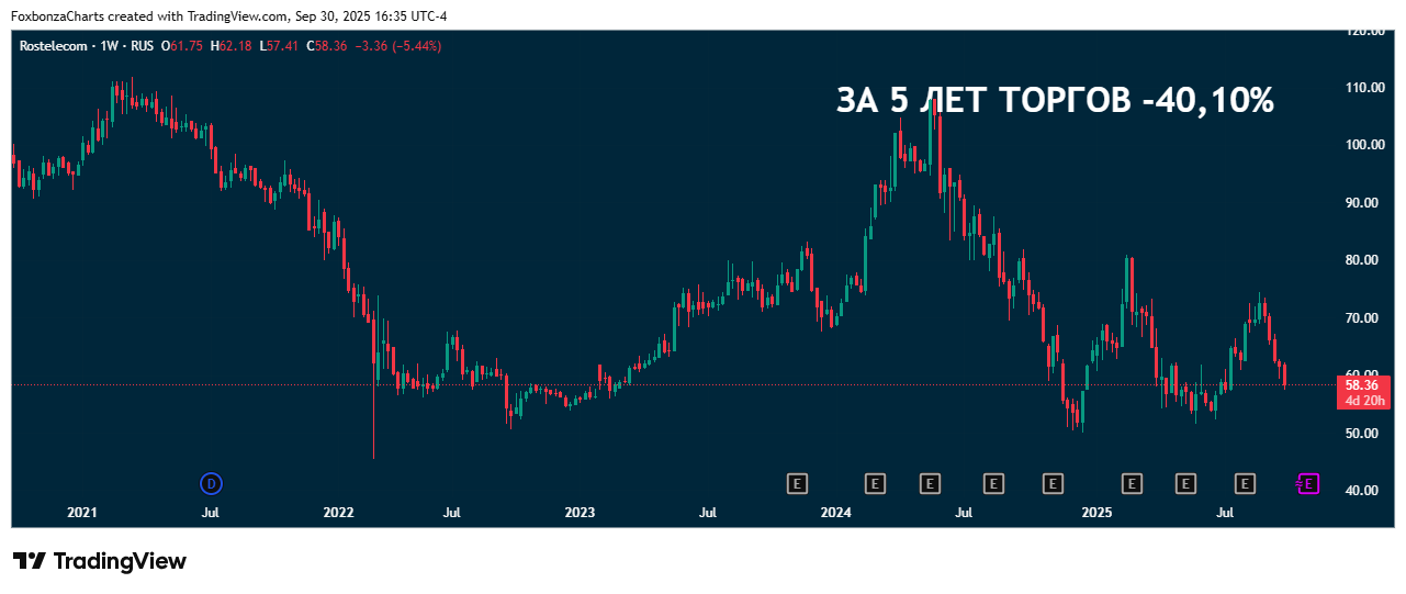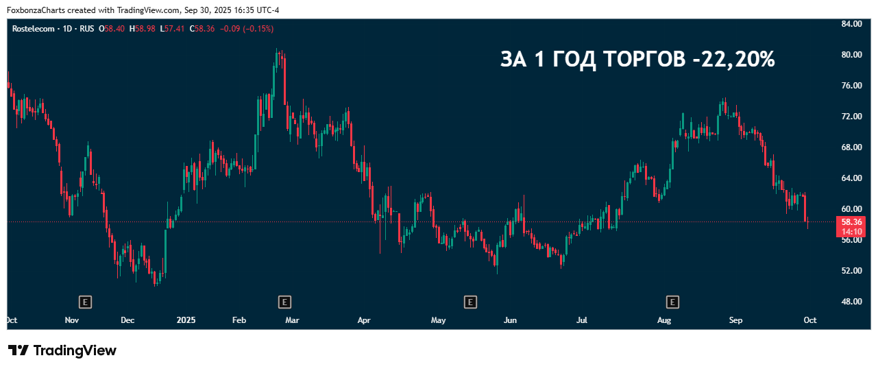 (RTKM, RTKMP) — крупнейший в России провайдер цифровых услуг и решений, работающий во всех сегментах рынка: B2C, B2B, B2G, B2O. Компания является лидером в сфере телекоммуникаций и цифровизации, охватывая миллионы домохозяйств и организаций. Дмитрий Медведев 06.08.2025 вновь был избран председателем совета директоров «Ростелекома». Компания занимает первое место с 13,4 млн клиентов, подключенных пользователей интернета по оптическим линиям, по мобильной связи входит в топ-3 мобильных операторов страны с 49 млн абонентов. По платному телевидению первое место с 11,8 млн клиентов. Совместно с партнерами «Ростелеком» развивает онлайн-кинотеатр Wink, который занимает второе место среди крупнейших видеосервисов России по количеству платящих подписчиков. Компания выступает ключевым технологическим партнером в реализации национального проекта «Экономика данных и цифровая трансформация государства», занимаясь разработкой цифровых государственных сервисов, развитием и эксплуатацией государственных информационных систем и платформ. Более 60 коммерческих ИТ-решений компании лидируют в своих рыночных сегментах. В то же время, нужно отметить, что по капитализации Ростелеком компания не большая.На момент публикации: