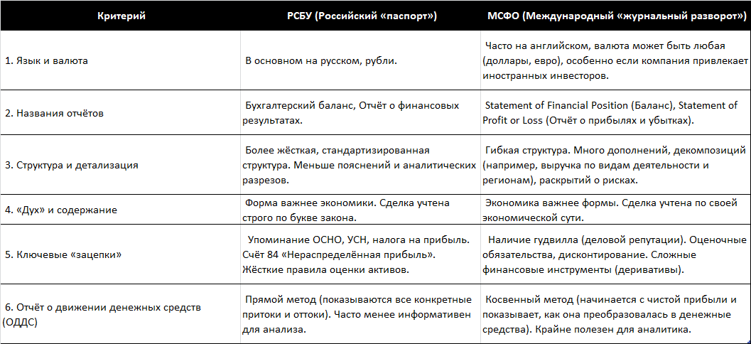 1. Экономическая суть vs. Юридическая форма. МСФО показывают, чем компания зарабатывает, а РСБУ — как она оформляет эту деятельность по российским правилам.