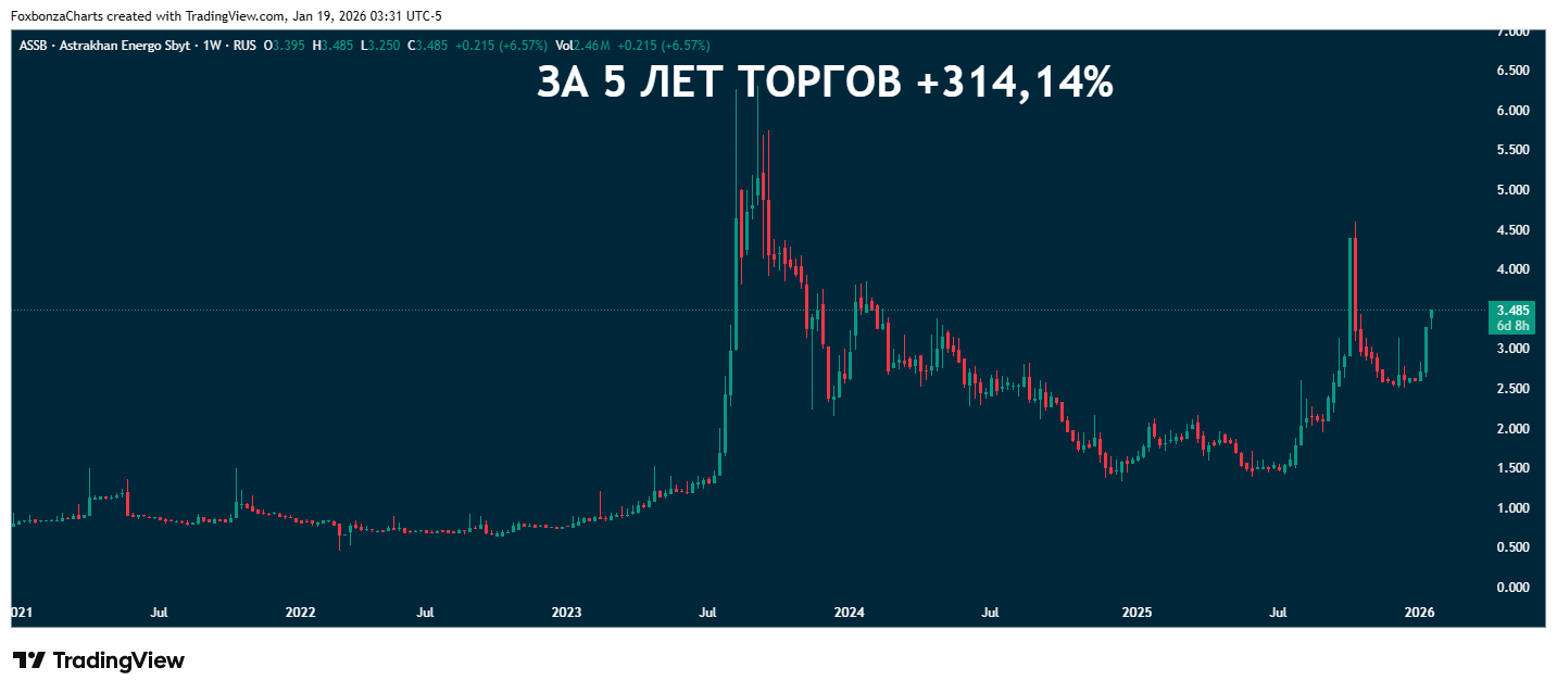 За 5 лет: +314.14% (данные с графика).