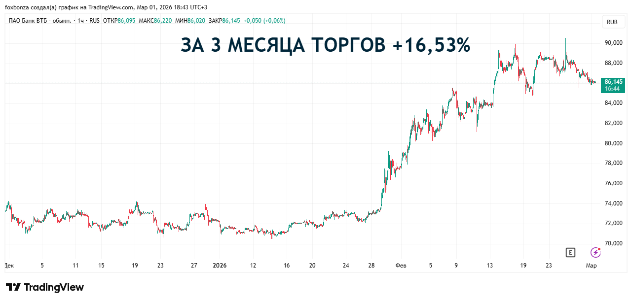 Итак, ПАО Банк ВТБ (VTBR) показал сильный, но противоречивый год. Прибыль снизилась, а резервы выросли, что говорит о высоком уровне неопределенности. Однако мощный рывок в 4-м квартале, рост комиссионных доходов и агрессивные планы менеджмента на 2026 год дают надежду на разворот тренда. Главные козыри в рукаве — высвобождение капитала, восстановление маржи и дивидендная история. На основании этих факторов, акции ПАО Банк ВТБ (VTBR) пока не включаются в «Инвестиционную Копилку Foxbonza». Но, чуя запах потенциальной сверхприбыли, Лис обязательно добавит их в «Foxbonza Коллекцию» для пристального наблюдения. Будем следить, удастся ли финансовому гиганту перестроиться и доказать свою эффективность в новом макроэкономическом цикле.