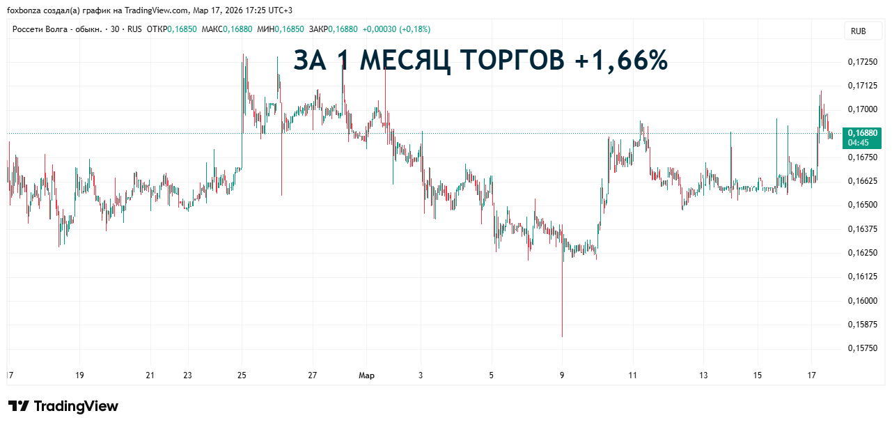 ПАО "Россети Волга" (MRKV) – это крупный игрок в российской электроэнергетике, дочка госхолдинга в лице ПАО "Россети". Компания занимается важным делом – передачей электричества по сетям и подключением новых потребителей в семи регионах Поволжья. Это целая инфраструктура, которая ещё очень долго будет нужна и чем дальше, тем больше. На момент публикации цена одной акции MRKV составляет 0,1697 рубля. При количестве выпущенных акций 188 307 958 733 штук, рыночная капитализация компании достигает 31 964 млн рублей.