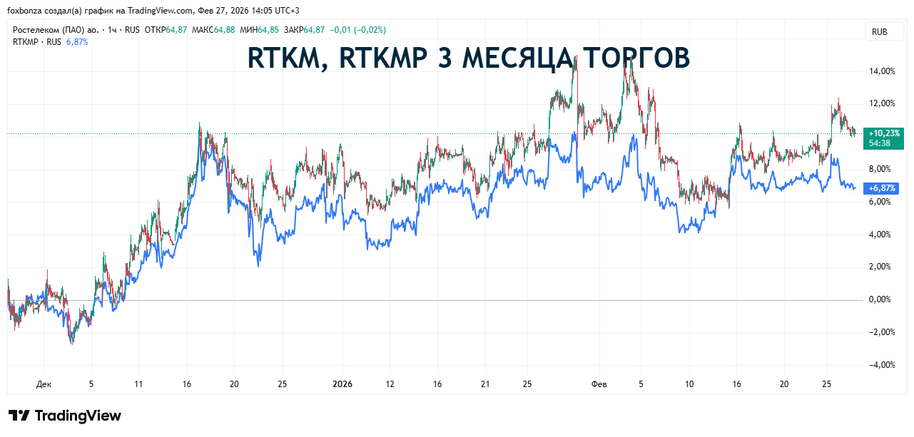 Блок: Динамика цены акций RTKM. RTKMP (Средняя оценка блока: 2.0 из 5)
