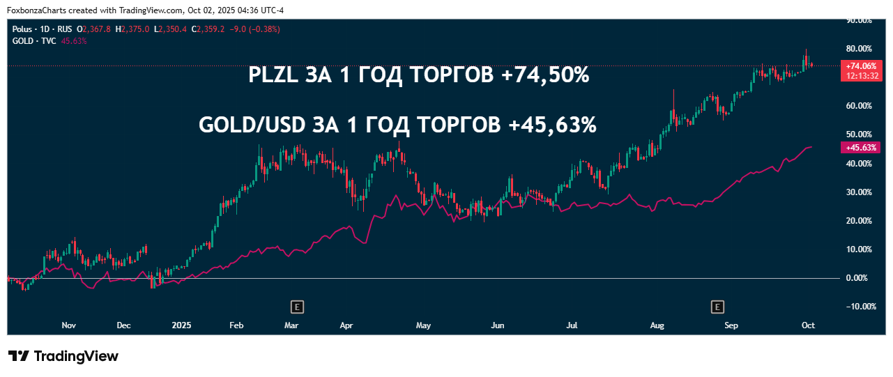 ПАО «Полюс» (PLZL) демонстрирует фундаментально сильные финансовые результаты: высокая прибыль, уверенно положительные денежные потоки и солидная ликвидность. Это позволяет компании оставаться флагманом отрасли золотодобычи и вознаграждать акционеров. Правда, только за счёт роста цены акций. Однако долг, рост операционных расходов и зависимость от конъюнктурных статей прибыли требуют внимания. Всё таки доля бумажной прибыли в 30% это хорошо, но в следующем периоде её может и не быть. На основании проведенного анализа, акции Полюс (PLZL) включаются в «Инвестиционную копилку Foxbonza». Лис следит за динамикой золотого рынка и пока она ему нравится. А результаты Полюса, до текущего момента хорошо положительно коррелируют с рынком золота. Велика вероятность, что так будет и дальше.