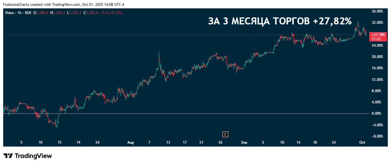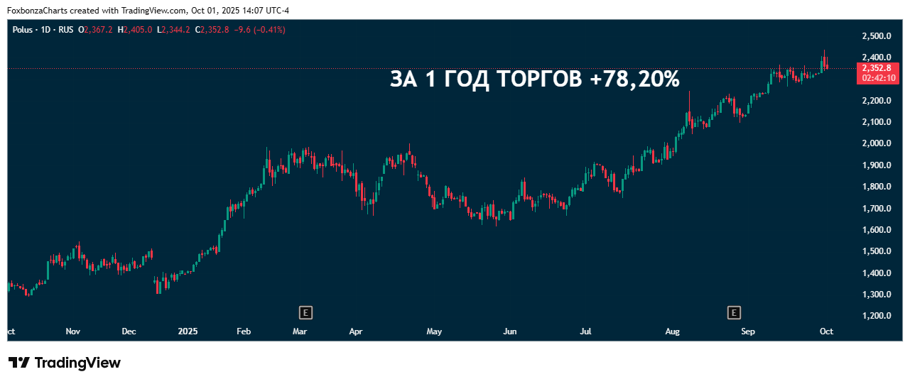 Рост прибыли продолжнается. Любой нормальный лис всегда ценит растущую прибыль. Чистая прибыль «Полюса» (PLZL) за полгода составила 172.5 млрд руб., что на 20.5% выше, чем за аналогичный период 2024 года (143.2 млрд руб.). Это говорит и о стечении благоприятных факторов и хорошей эффективности операционки в текущих условиях.