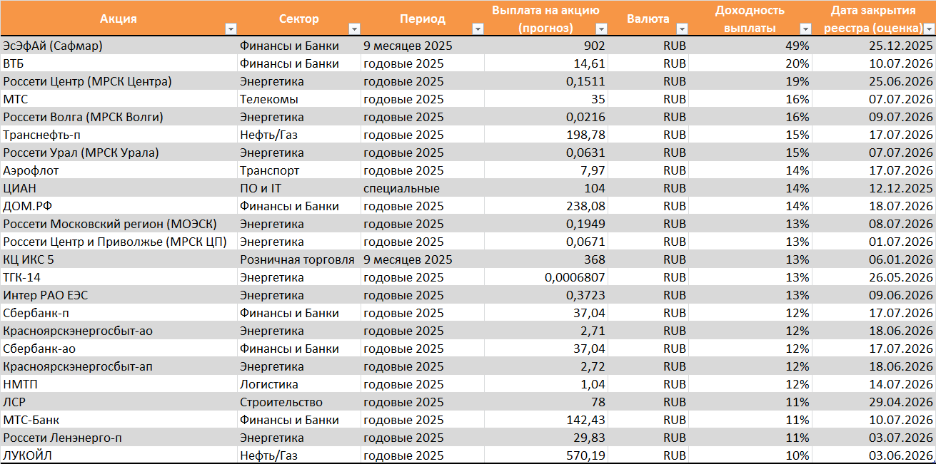 Логика: Речь не о мифических «защитных секторах», а о компаниях с прозрачной политикой и историей высоких выплат. Их дивидендная доходность становится относительно более привлекательной на фоне падающей доходности по новым депозитам и облигациям.
