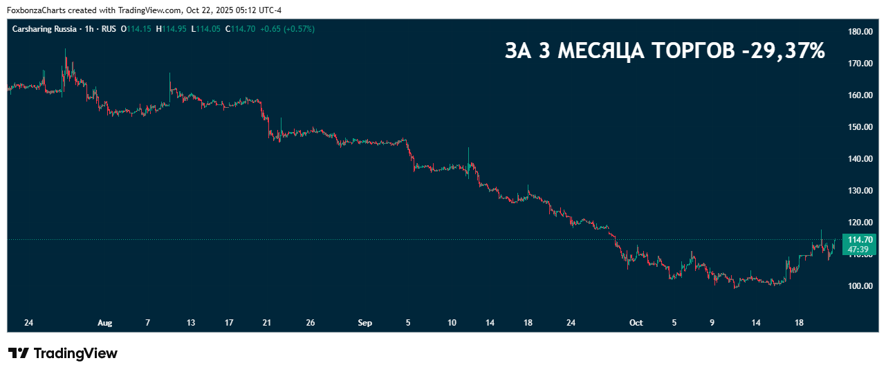 "Каршеринг Руссия" — это один из лидеров российского рынка каршеринга, работающий под брендом «Делимобиль». Компания оперирует в 16 городах России и владеет крупнейшим в стране каршеринговым парком. Ее операционная деятельность включает не только краткосрочную аренду авто, но и продажу подержанных машин, доставку и техническое обслуживание. Количество выпущенных акций: 175 849 057 шт. Цена акции: 114.55 руб. Капитализация: 20 143 млн руб.