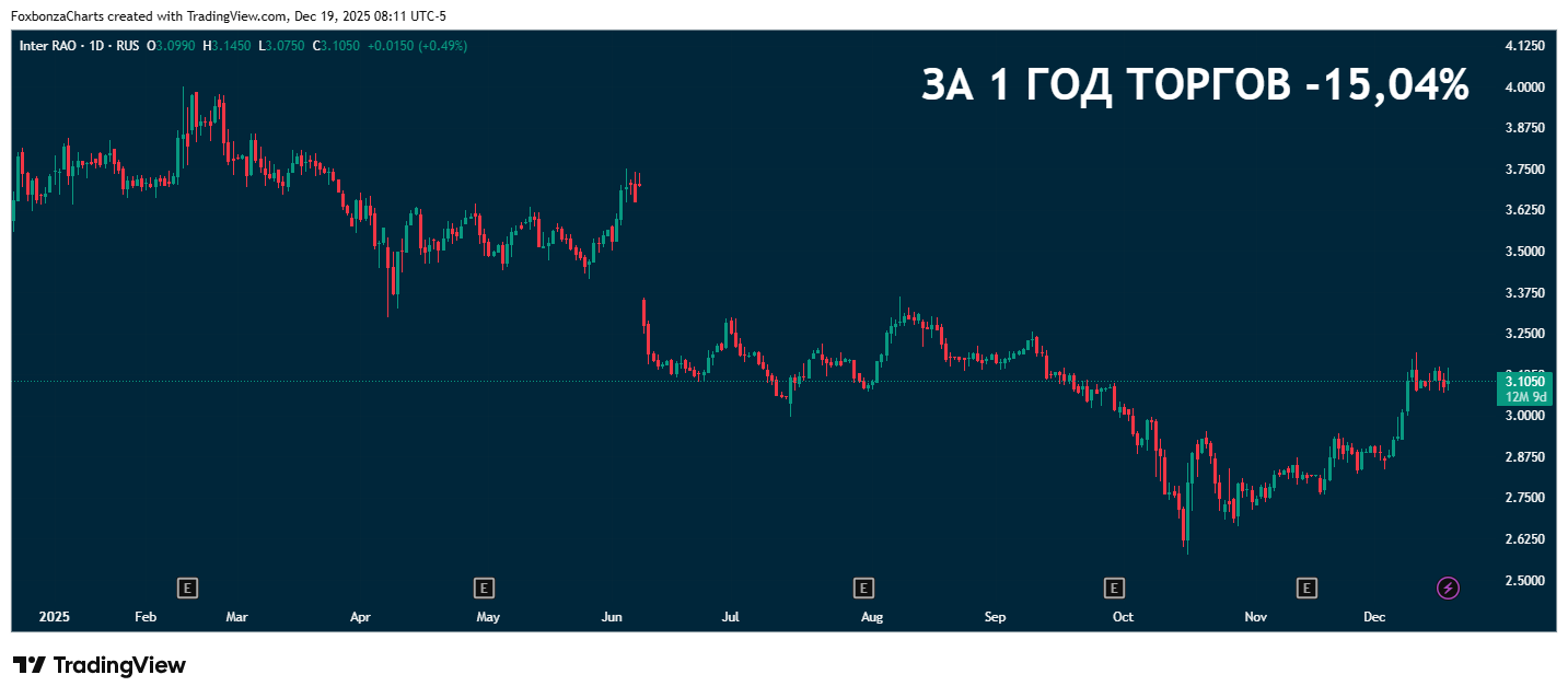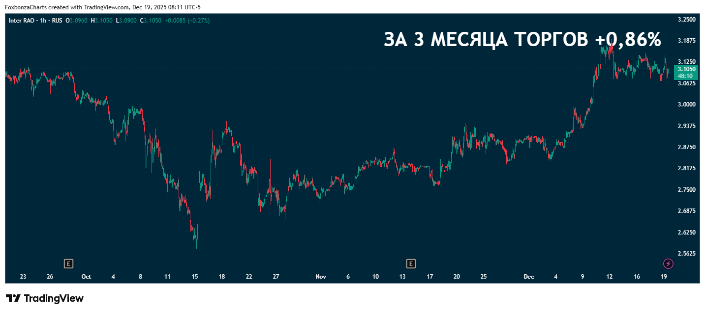 ПАО «Интер РАО» (IRAO) — российский энергетический холдинг с государственным участием. Ключевые направления: генерация, сбыт и трейдинг электроэнергии, теплогенерация, строительство и энергомашиностроение. Компания является одним из лидеров на рынке, обладая значительными генерирующими и сбытовыми активами. Данные на момент публикации: Количество выпущенных акций: 104 400 000 000, Цена акции: ~3.1040 рублей. Капитализация компании: около 324 млрд рублей.