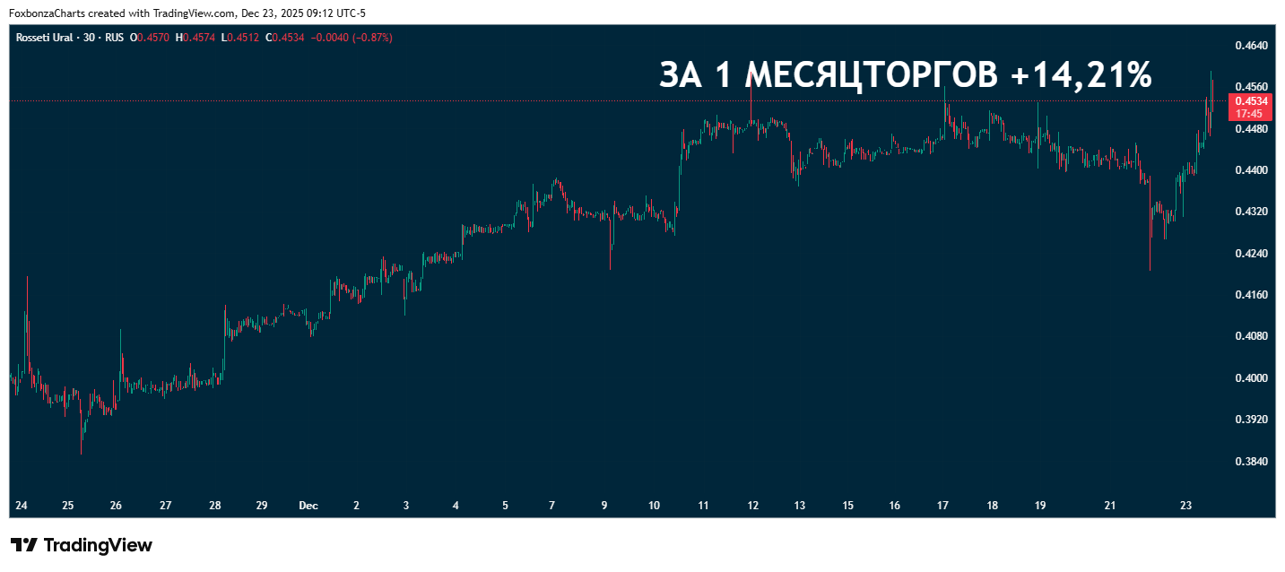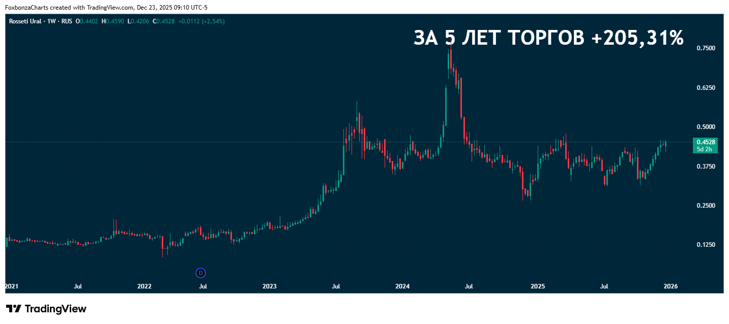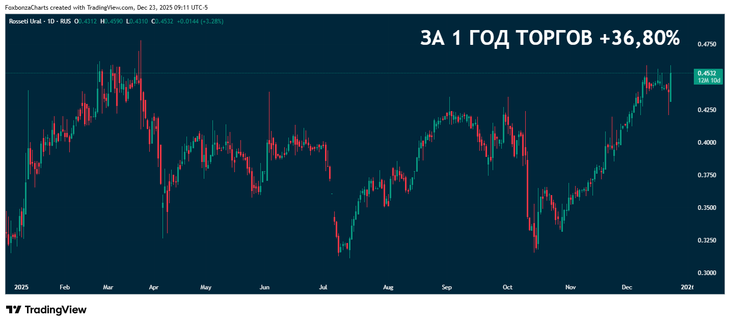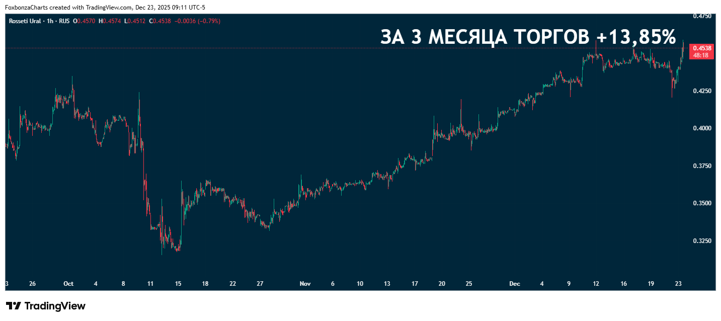 ПАО "Россети Урал" (MRKU) – межрегиональная сетевая компания, оператор электросетевого комплекса в Уральском регионе (Свердловская, Челябинская области, Пермский край). Основная деятельность – услуги по передаче и распределению электроэнергии, а также технологическое присоединение к сетям. Компания занимает монопольное положение на своей территории. Количество выпущенных акций: 87 430 485 711. Цена акции на 23.12.2025: 0,4536 руб. Капитализация компании: примерно 39,66 млрд руб.