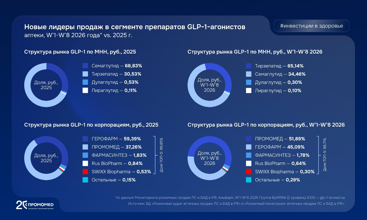 ПАО «Промомед» (PRMD) — это обитатель полянки российского фармрынка. Это именно производитель. Промомед не перепродают колеса и снадобья, а занимаются полным циклом: от разработки (с акцентом на эндокринологию, онкологию, неврологию и антибиотики) до промышленного производства на собственных площадках в Саранске и Обнинске. Основные деньги в PRMD делают на продаже лекарств собственной разработки, что, согласитесь, круче в финансовом плане низко маржинальной дистрибуции. Компания активно инвестирует в R&D (более 1,6 млрд рублей вложено в разработки только за 2025 год) и позиционирует себя как флагман импортозамещения. На момент публикации: Количество выпущенных акций: 212 500 000 шт. Цена акции: 427,60 рублей. Капитализация компании: 90 865 млн. рублей.