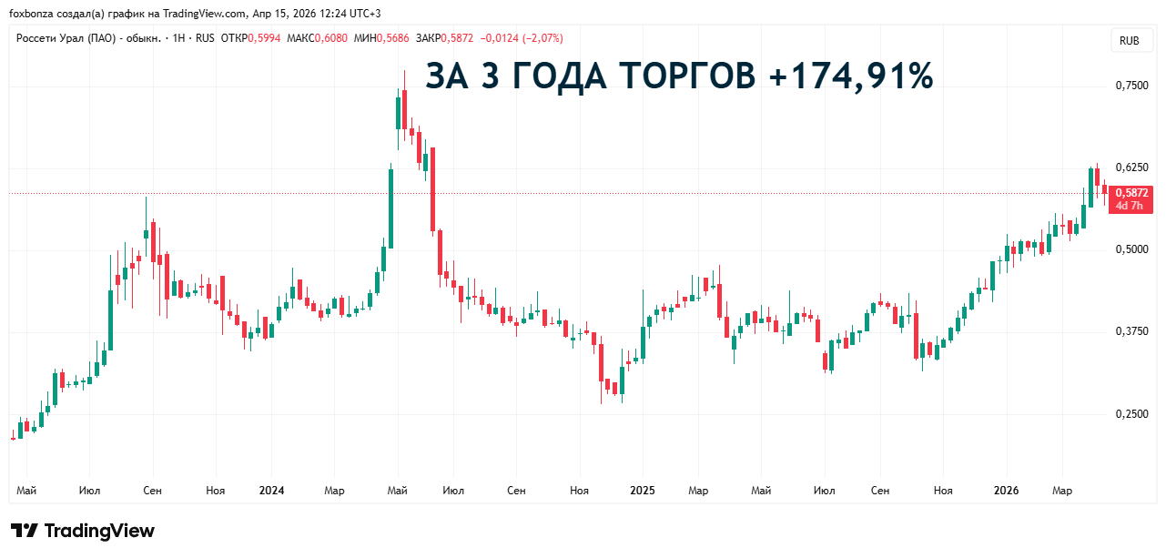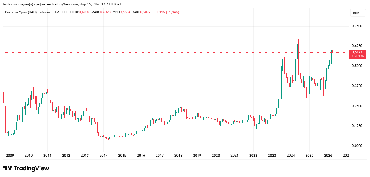 ПАО «Россети Урал» (MRKU) за 2025 год — мощный прирост чистой прибыли на 30% до 13,3 млрд руб., который идеально ложится в канву уже состоявшегося ралли. За последние 12 месяцев акции взлетели на 58,7%, а за три года — на 174,9%, достигнув цены 0,587 руб. Рынок, похоже, заранее отыгрывал именно то, что мы видим в цифрах: операционная прибыль подскочила на 31% до 20,8 млрд руб., EBITDA выросла на 20% до 34,3 млрд руб. Ложка дегтя классическая — резерв под ожидаемые кредитные убытки вырос до 367 млн руб. против восстановления годом ранее, что намекает на ухудшение платежной дисциплины смежников. Краткосрочный долг подрос до 14,7 млрд руб., но при денежной подушке в 11,7 млрд руб. и свободном лимите по кредитным линиям почти в 50 млрд руб. это совсем катастрофа.