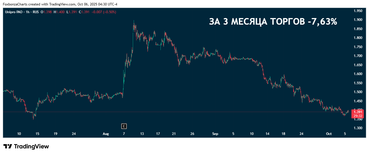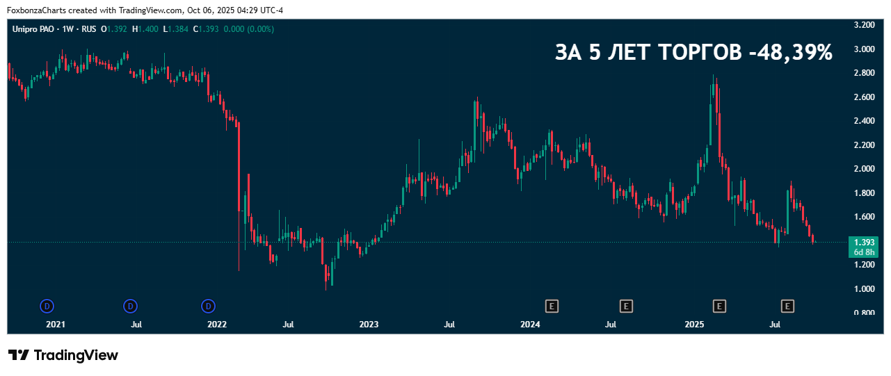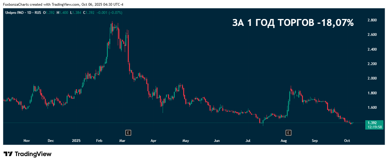 Структура собственности и внешнее управление. 83,73% акций UPRO принадлежат немецкому концерну Uniper SE, который, в свою очередь, контролируется правительством Германии. С апреля 2023 года этот пакет находится под временным управлением Росимущества. В отчете прямо указано, что Uniper SE более не консолидирует в отчётах «Юнипро» и оценил свою инвестицию в 1 евро. Такой геополитический и юридический мордобой — серьезный риск непредсказуемости для миноритарных акционеров. Это основная заноза, которая не даёт данному активу и ценной бумаге расправить плечи.