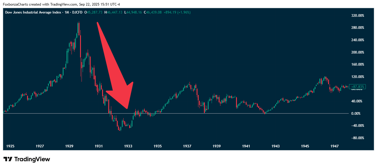 «Черный понедельник» (28 октября 1929 года): Рынок обрушился с новой силой. Индекс Dow Jones упал на 13%.
