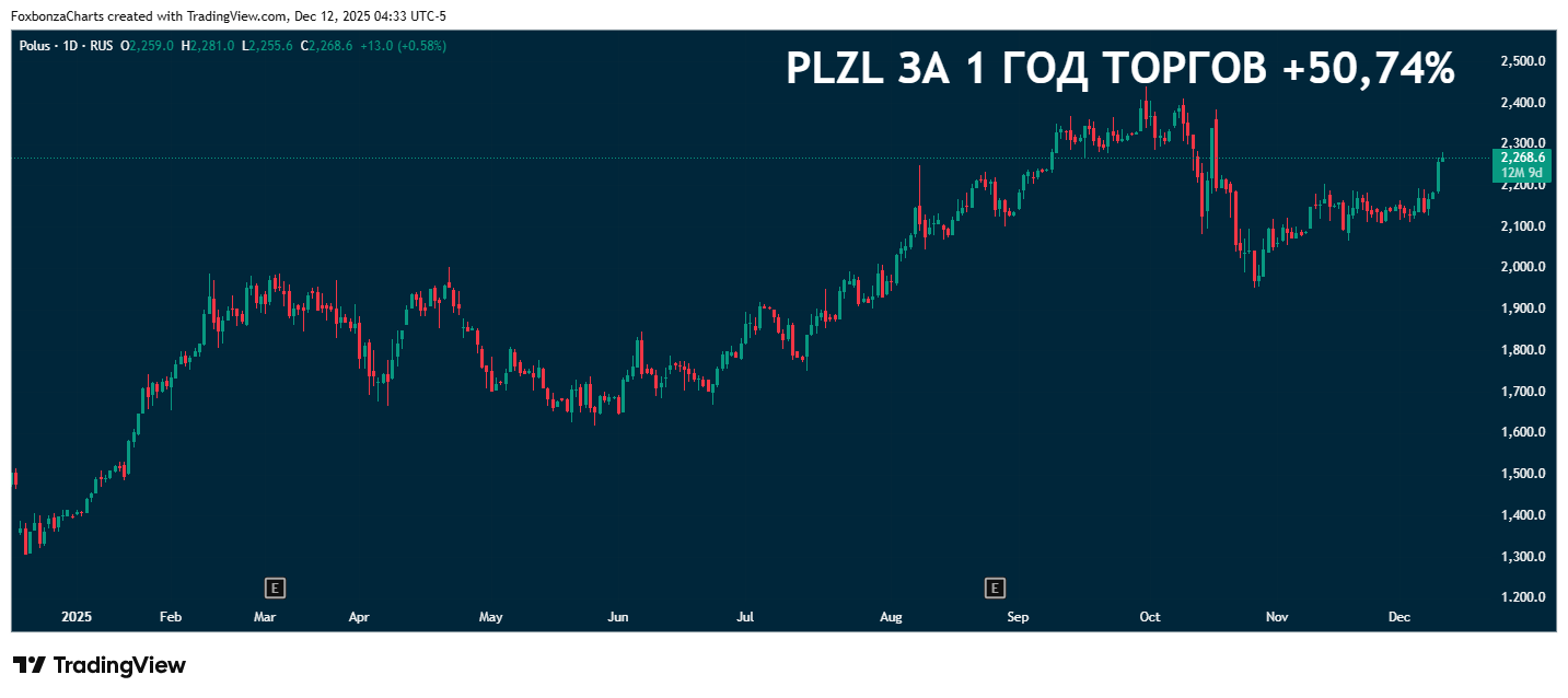 ПАО «Полюс» объявил акционерам о выплате дивидендов за III квартал 2025 года в размере 36 рублей на акцию. Дата, на которую определяются лица, имеющие право на получение дивидендов, установлена на 22 декабря. Дивидендная доходность 1,58%.