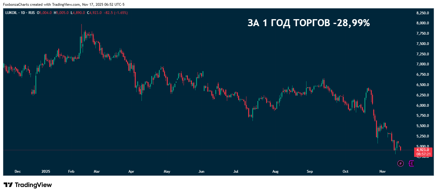 В октябре Минфин США и Великобритания ввели санкции против «ЛУКОЙЛа», включив компанию в санкционный список. В связи с этим «ЛУКОЙЛ» объявил о намерении продать свои международные активы, а в случае необходимости — обратиться за продлением лицензии на продолжение деятельности. Компания получила предложение о выкупе зарубежных активов от международного трейдера Gunvor, однако сделка не состоялась из-за позиции Минфина США, который заявил, что не выдаст лицензию Gunvor на ведение бизнеса, пока продолжается конфликт на Украине.