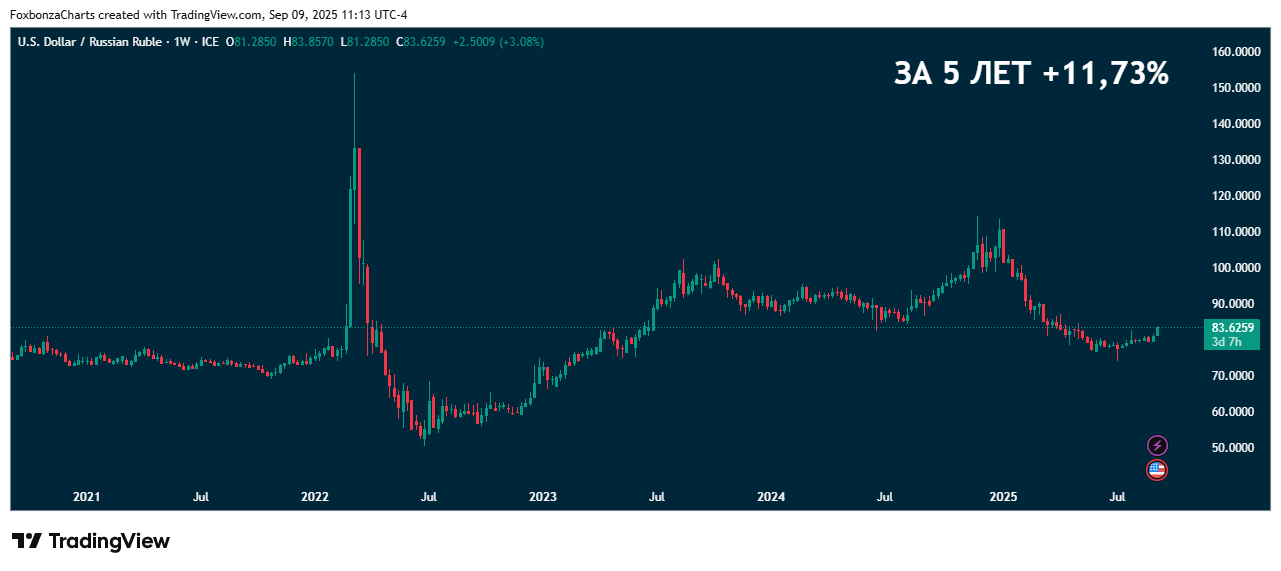 USDRUB_2025-09-09_18-13-55.png57.16 KB"В ближайшие три года, конечно, предсказывать очень сложно, но, опять, при нормализации геополитики, пока я не вижу чего-то, что может привести к сильному укреплению рубля. Ну, и понятно еще, потребительский импорт сильно стагнирует, то есть сберегательная модель поведения, люди не тратят, люди накапливают. Все это приводит к тому, что спрос на импорт снижается, и нет такого давления на курс рубля. В ближайшие три года ситуация может сильно поменяться, в случае изменения геополитики, конечно, снятия санкций, допустим, разворота поведения населения, это может очень сильно ослабить рубль, что, в общем, даст большой стимул для экономики", - добавил он.