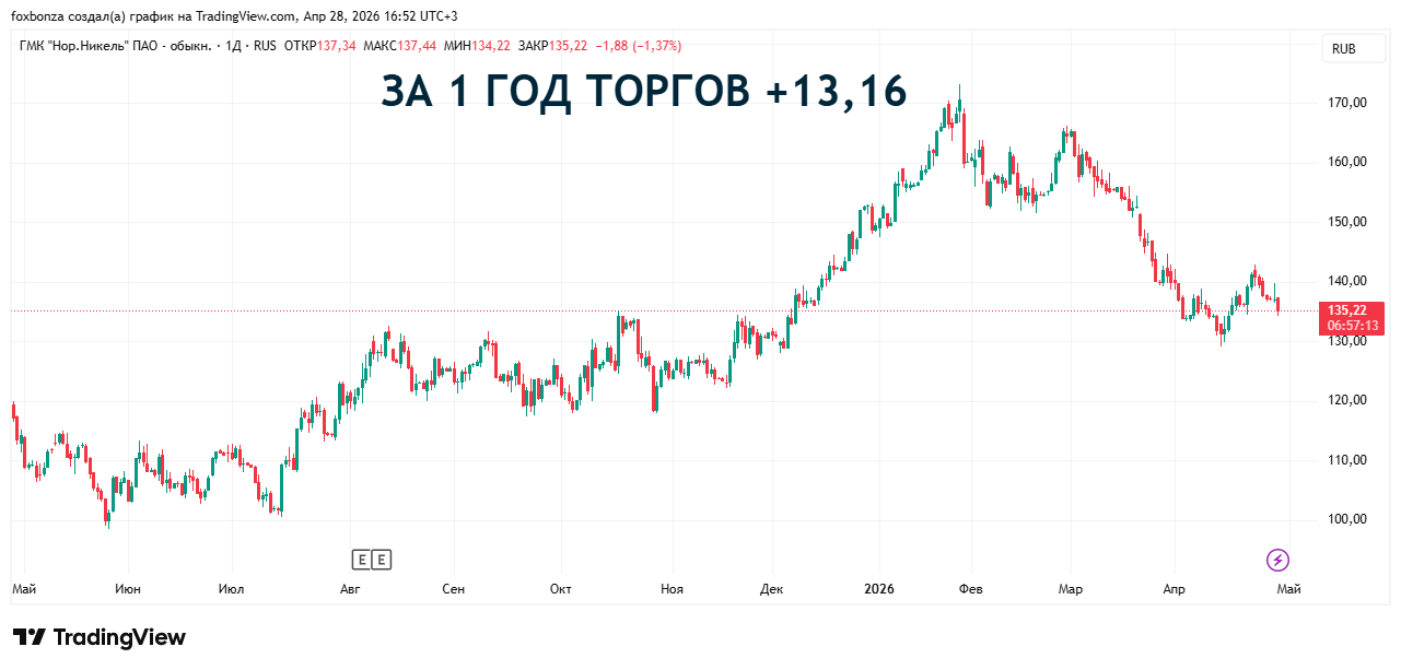 В первом квартале 2026 года «Норникель» выпустил 41,75 тыс. тонн никеля, что на 0,3% больше, чем в аналогичном периоде 2025 года. Прогноз на год, по словам компании, остается прежним — 193–203 тыс. тонн никеля, что соответствует уровню 2025 года.
