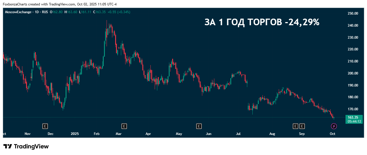 По сравнению с августом 2025 года объем торгов вырос на 13,5%, со 143,5 трлн рублей.Предыдущий максимум по месячному объему был зафиксирован в марте 2022 года на уровне 154,5 трлн рублей.