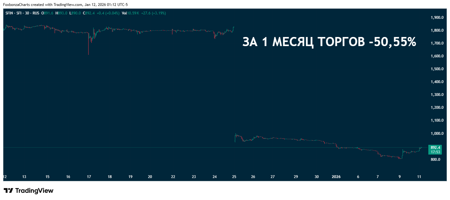 SFIN ПАО "ЭсЭфАй" лидер падения за месяц