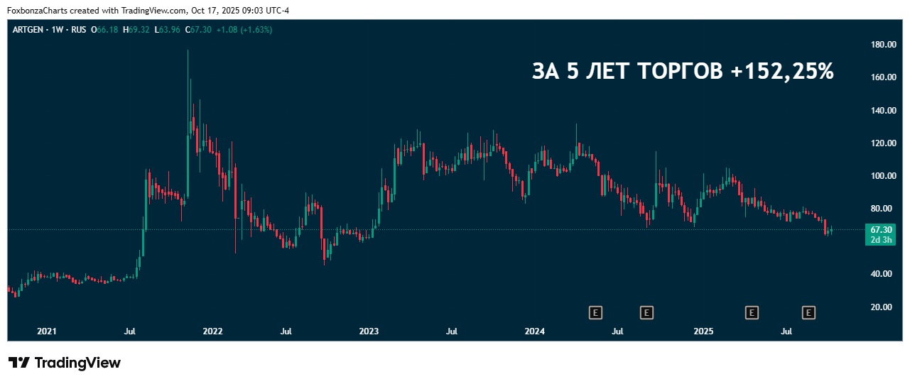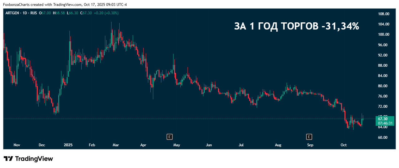 ПАО «Артген биотех» – это российская биотехнологическая компания, работающая на стыке передовых направлений: генной терапии, клеточных технологий, медицинской генетики и биоинформатики. Группа объединяет ряд известных дочерних структур, таких как «Гемабанк» (криохранение стволовых клеток), «Генетико» (генетические исследования), «Репробанк» (банк репродуктивных материалов) и «НекстГен» (разработка препаратов, включая «Неоваскулген»). Компания является заметным игроком в своей нише, совмещая коммерческие услуги с масштабными научно исследовательскими проектами. Данные на момент публикации: Количество выпущенных акций: 92 645 451 шт. Цена акции: 67,30 руб. Капитализация компании пока не велика: 6 235 млн руб.