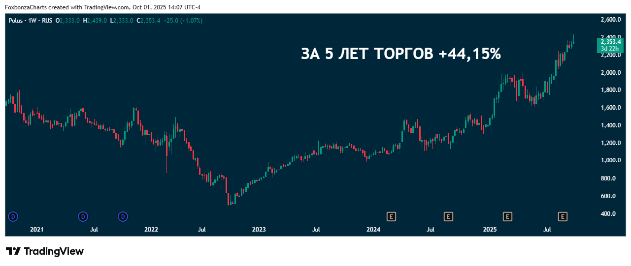 Акционеры ПАО "Полюс" утвердили дивиденды за I полугодие 2025 года в размере 70,85 рубля на акцию, сообщила компания.Датой, на которую определяются лица, имеющие право на получение дивидендов, установлено 13 октября. Общая сумма выплат может составить 67,3 млрд рублей. Это соответствует целевому коэффициенту дивполитики "Полюса" - 30% от EBITDA (не включая квазиказначейский пакет). Дивидендная доходность: 3,01%.